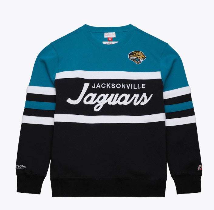 Jacksonville Jaguars Mitchell & Ness Vintage Logo Head Coach Fleece Pullover Sweatshirt Crew