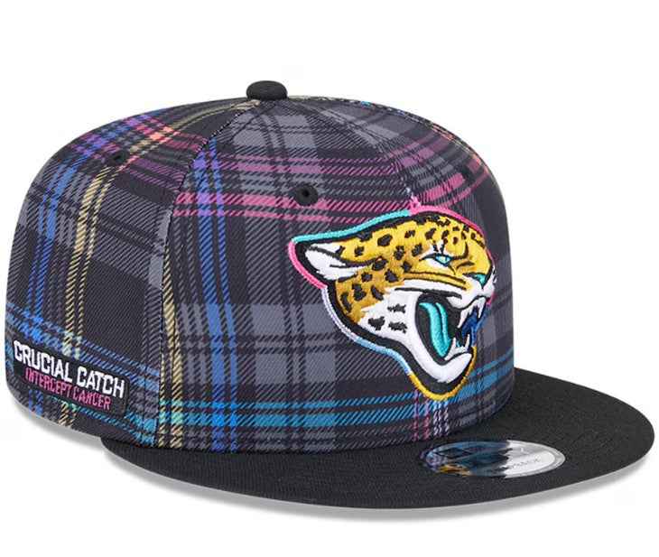 Add a new era of style to your young fan's wardrobe with the Jacksonville Jaguars New Era YOUTH 9Fifty 2024 Crucial Catch Snapback Hat! Not only will they look sharp, but this hat also supports the Crucial Catch initiative, helping to fight cancer. (Go Jags!)