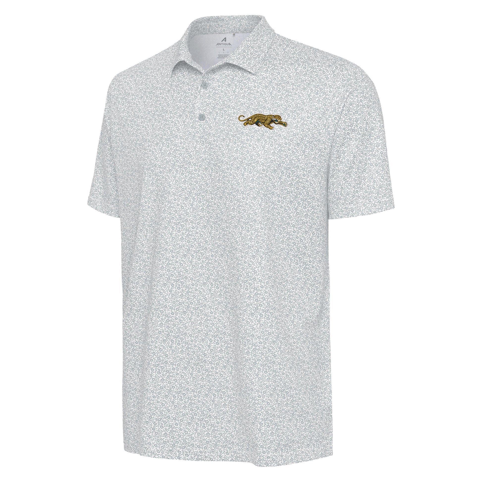 Show your Jaguars pride in this stylish white floral Antigua polo featuring the dynamic Prowler logo. Perfect for game day or casual wear, it blends team spirit with comfort and sharp design.