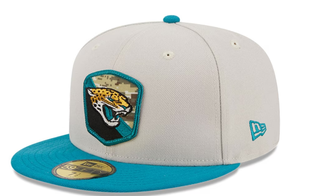 NFL Jacksonville Jaguars New Era Stone/Teal 2023 Salute To Service 59FIFTY Fitted Hat