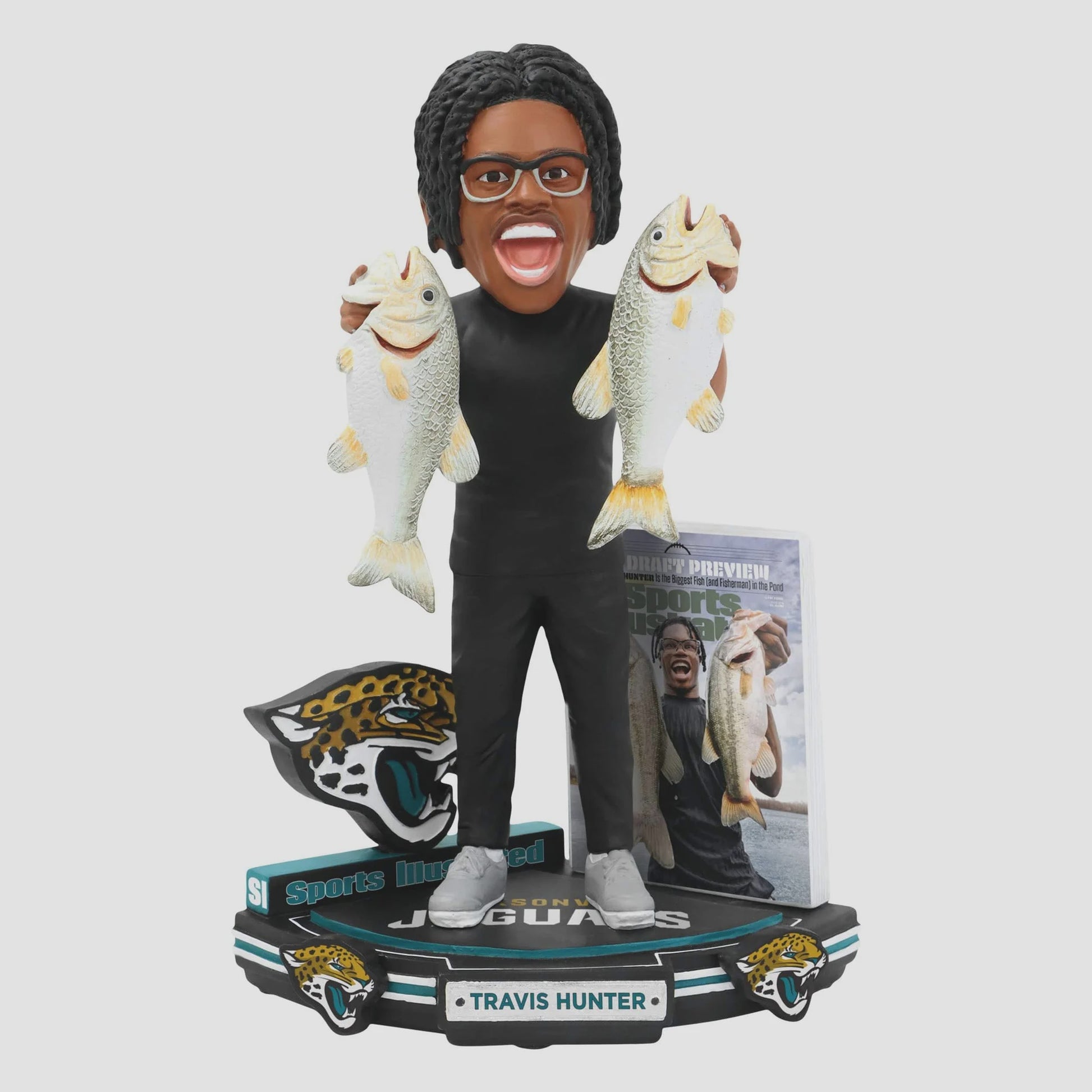 Travis Hunter reeled in the spotlight, and now he’s hooked a spot in your collection. Make a newsworthy addition to your collection with this Travis Hunter Jacksonville Jaguars Biggest Fish In The Pond Sports Illustrated Cover Bobblehead.