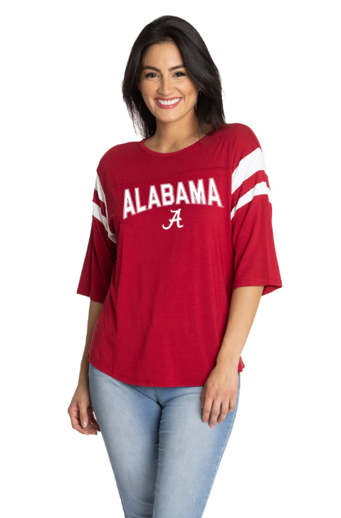 Show your Alabama pride with the Crimson Tide Flying Colors Abigail Jersey—a refined blend of style and comfort that elevates your game day wardrobe.