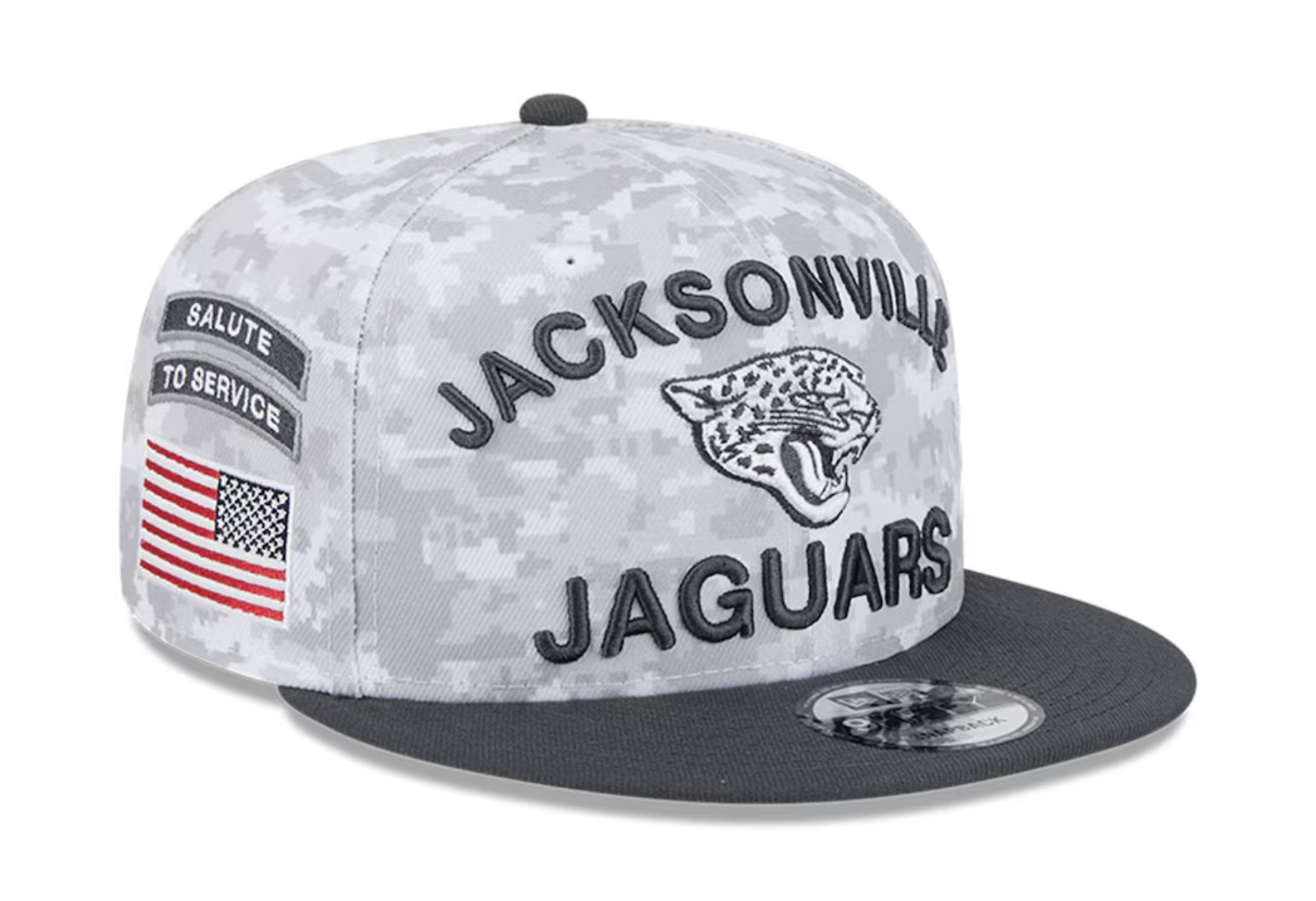 Youth Jacksonville Jaguars New Era White/Graphite 2024 Salute To Service 9FIFTY Snapback Hat